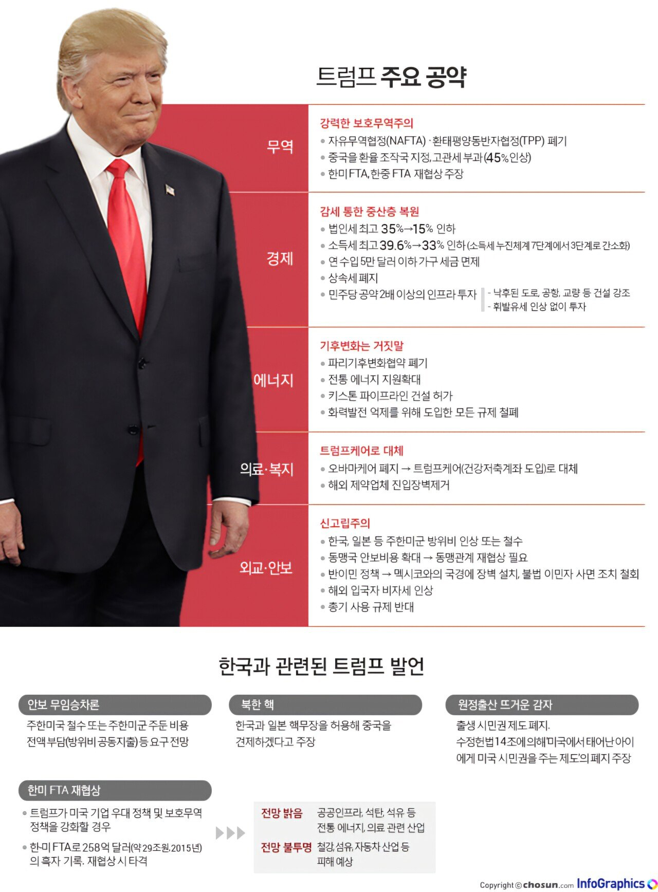 개인적으로는 북한 핵과 관련해서 트럼프의 행보에 관심이 갑니다. 북한 견제 & 방산과 관련해서 어떤 영향을 끼칠지가 궁금하네요.