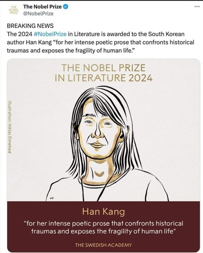 - 한강, 아시아 여성 최초의 노벨문학상 수상자가 되다