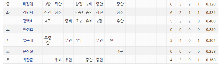 사실 4회에 강백호의 좌전 2루타를 잡나 싶었는데