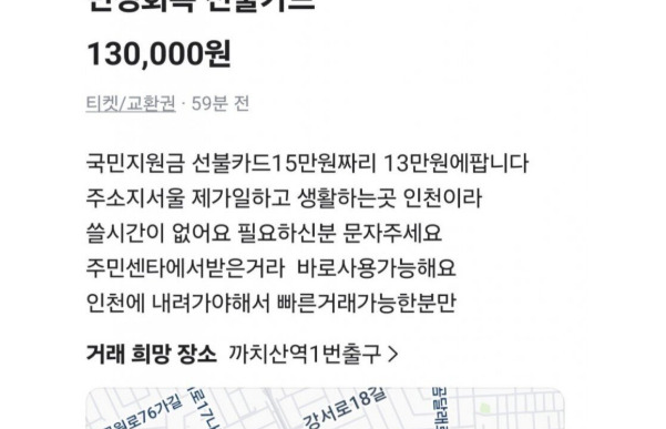 선불카드를 팔거나 심지어 특정 장소에서 만나 현급을 받거나 이체를 받고, 본인의 소비쿠폰(카드)으로 결제를 해주는 결제 대행 빌런까지도 등장했더군요.