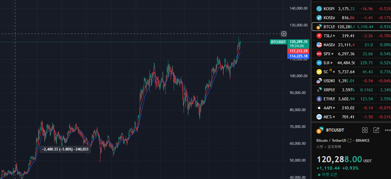 현재 이 두가지 소식을 뉴스나 신문에서는 연이어 떠들어 대고 있습니다. 코인시장은 미 가상자산 3번 '크립토 위크'로 통과로 비트코인이 훨훨 날아가고 있고, 주식시장(국장)에서는 정권의 교체? 오를때가 되서 오른다? 뭐 이유는 상관없습니다. 드디어 상승장에 돌입했습니다.