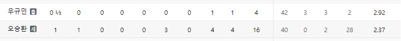 이 형은 조금 좌절할 만도 한데... 1이닝 3개의 삼진으로 이닝 삭제.