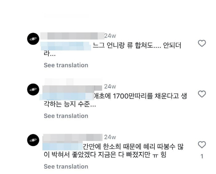 2. 계정 프로필이 토성 이미지. 한소의 SNS 계정에 똑 같은 사진을 올린적이 있다.