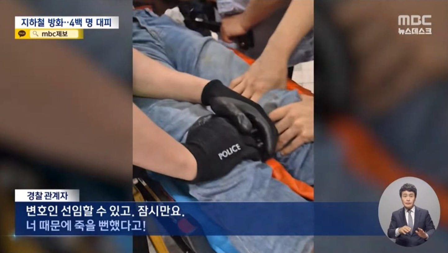 참 어이가 없는 점은 방화범인 60대 남자는 도망을 치다 걸린 것도 아니고, 대피하는 생존자인척 들것에 실려 나오다 경찰에 잡혔다고 합니다. 이유인즉 손이 검게 그을린 것이 수상해서라고….