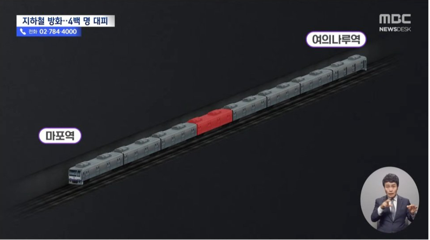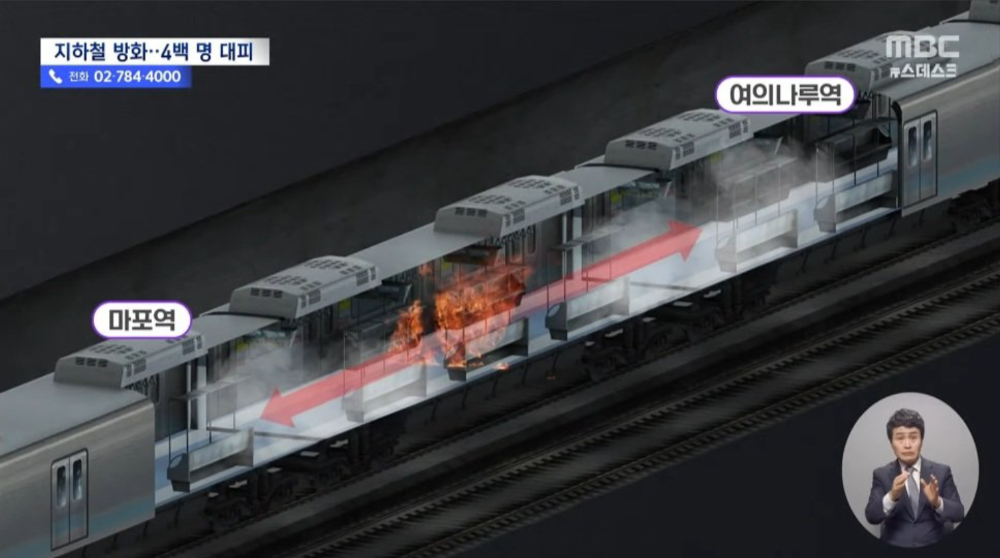 뉴스에서는 객차가 마포역을 향해 여의나루역을 막 출발해서 빠져 나왔을때 방화를 했다고 합니다. 그것도 객차 8칸중 4번째에서 말이죠. 아래 사진을 보면 양쪽으로 번지게 해서 앞뒤로 희생자가 많이 나올 수 있게 정가운데를 고른 것 입니다.