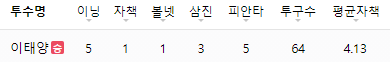 오늘 땜빵 선발(?)이었는지는 모르겠지만 어쨋든 5이닝 1실전 1볼넷 피안타5개 삼진 3개. 총 투구수 64개로 승리했다.