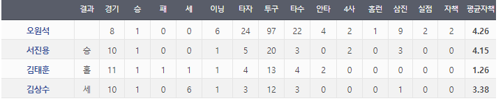 무엇보다 9개의 탈삼진과 4사구가 2개밖에 안된다는 것이다.