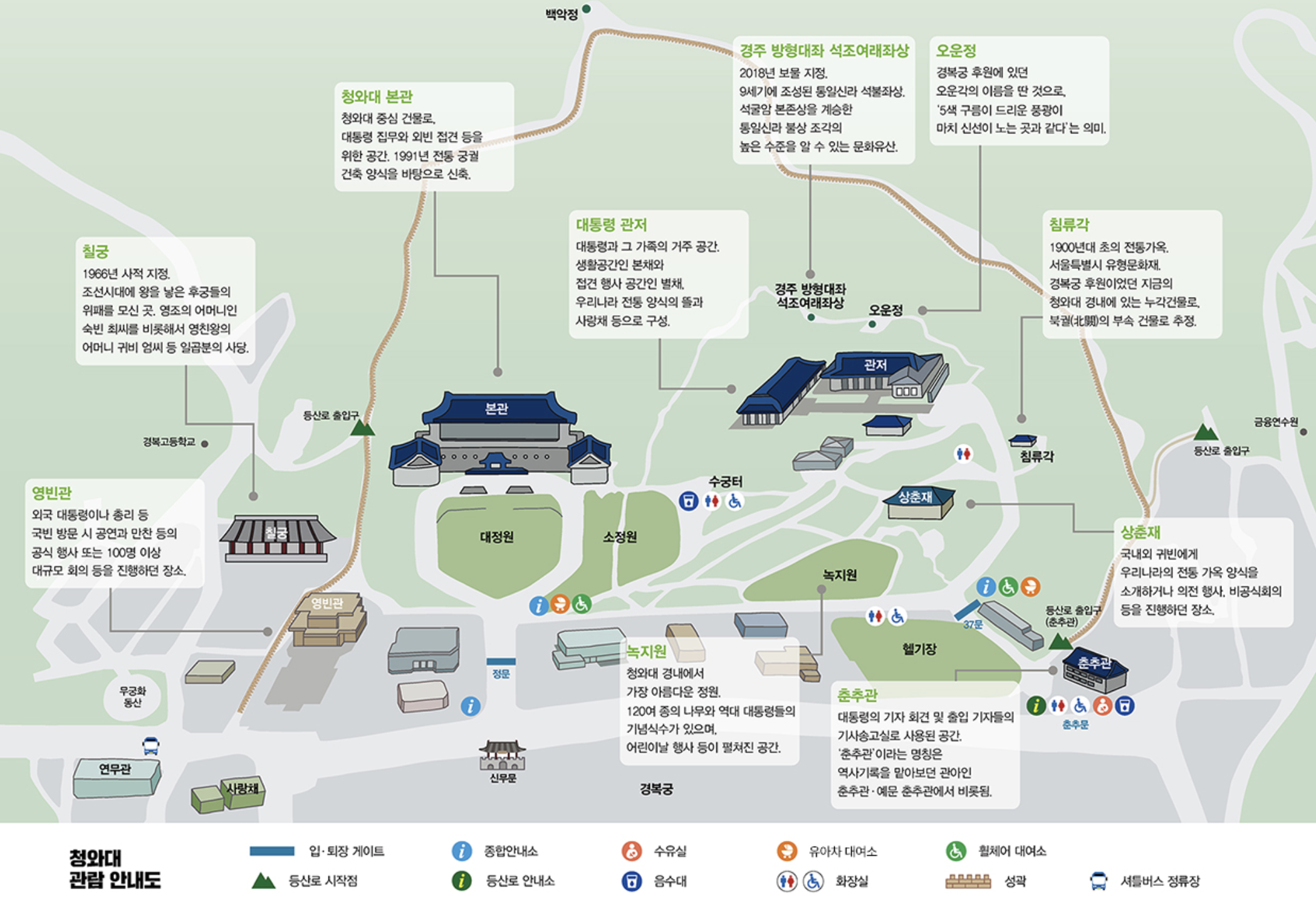 청와대는 단순한 관광지가 아닌, 대한민국 현대사의 중심 공간입니다. 특히 2025년 현재 야간 개방과 다양한 프로그램 덕분에 관광 + 문화체험 + 산책을 모두 누릴 수 있는 특별한 장소로 변신했어요.