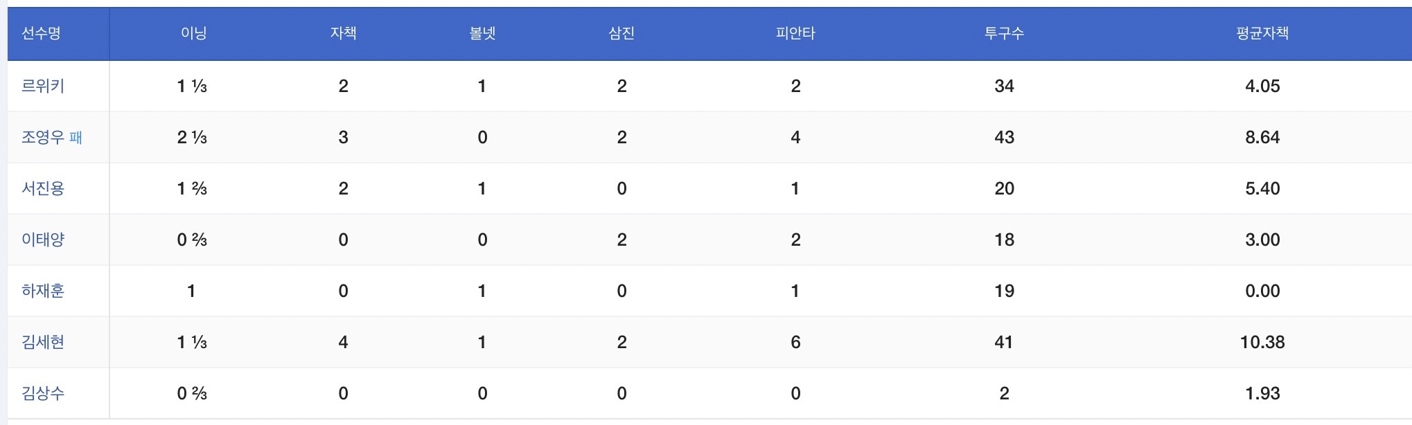 조영우는 나오면 실점, 패배를 기록하고 있다