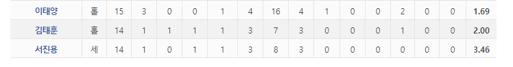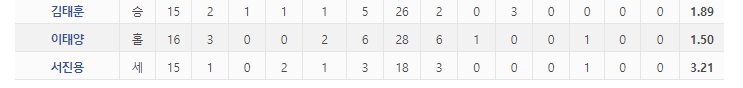 다만 2차전에서 아귀힘이 떨어진건지 볼넷2개와 몸에 맞는 볼은 아쉬운 성적.