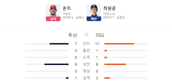 4. 두산 패 0.0 : 잔여게임 9 / SSG에게 제대로 한방 맞았다.