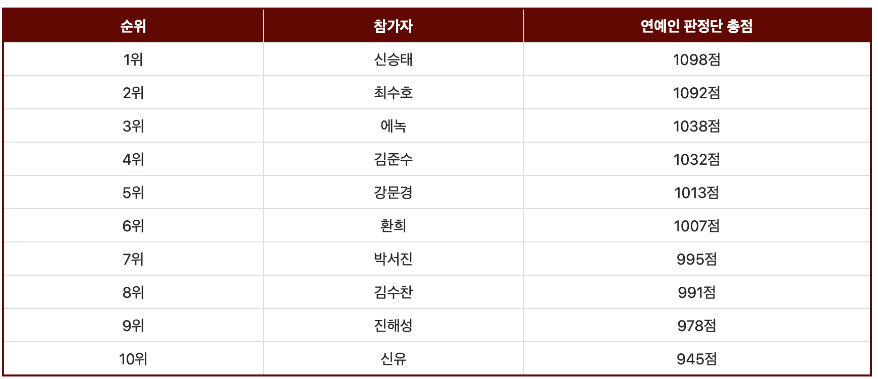 ✅ 연예인 판정단 점수 (100점 만점)