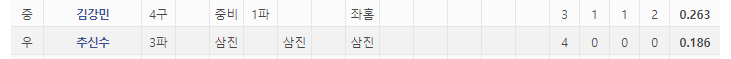 근데 이게 또 신기한게 외국인 투수를 상대로는 제법 치고 있다는 것.