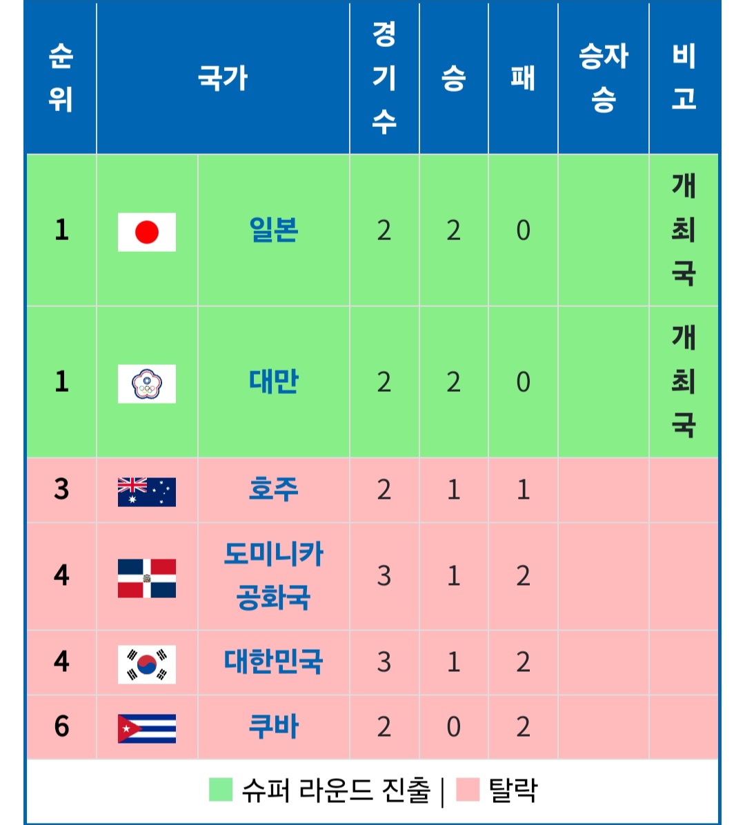물론 그렇다해도 승자승에서 밀리기 때문에 100% 진출이 가능한 것도 아닙니다. 결국 대한민국은 세대교체를 위한 준비단계에서 약간의 희망만 보았을뿐. 야구 강국의 이미지는 또다시 일본과 대만에게 줘야할 판이네요.