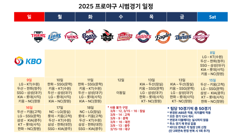 드디어 기다리고 기다리던 2025 프로야구 일정이 확정되었습니다!