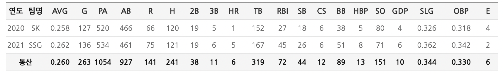2021년에 우리가 기대했던 최지훈은 데뷔시즌이었던 2020년보다 나은 공격력과 1번타자로서 적당한 출루율을 기대했다.