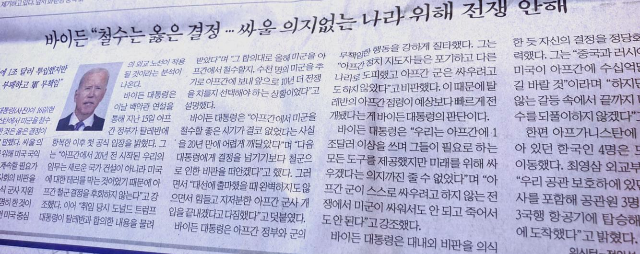 " 철수는 옳은 결정...싸울 의지 없는 나라 위해 전쟁 안해"