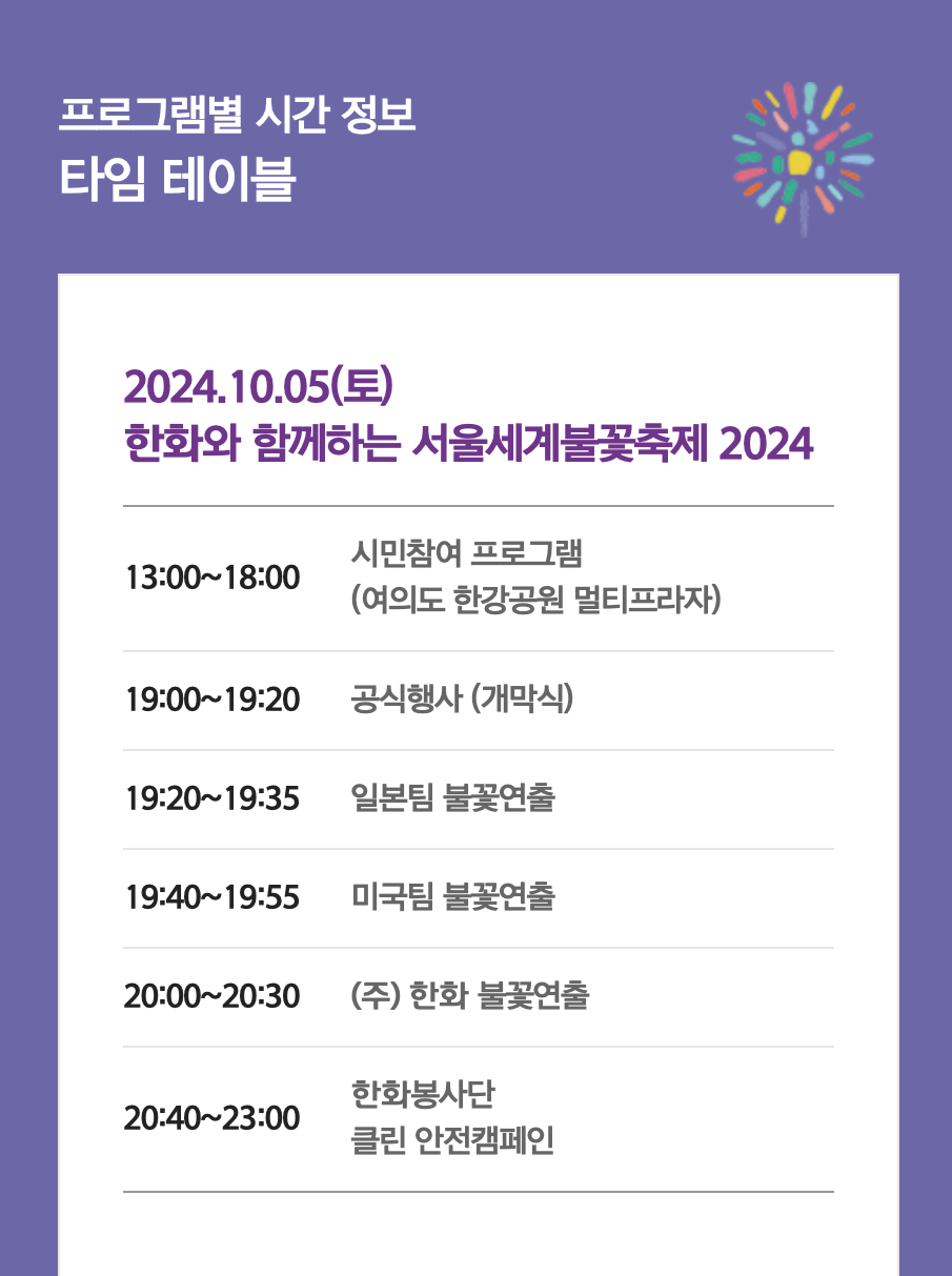 불꽃 축제를 즐기러 가시는 분들 모두 즐거운 시간을 보내시길 바랍니다.