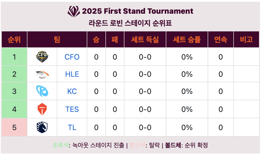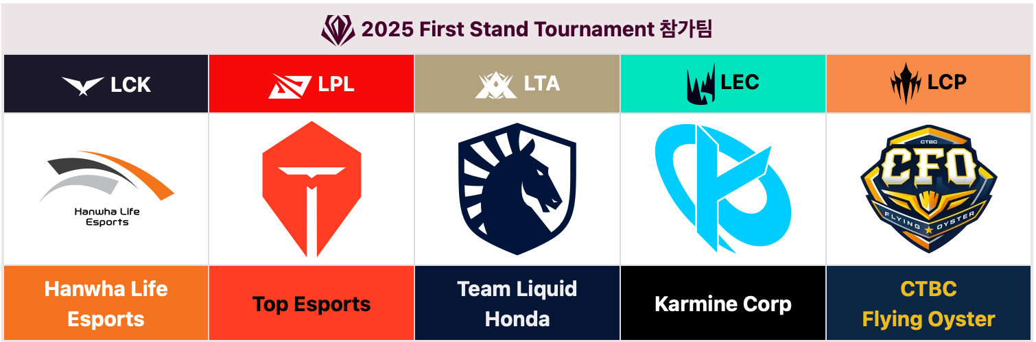 퍼스트 스탠드 토너먼트는 2025년부터 신설된 LOL 국제대회입니다. 1년에 세번으로 나눠진 스플릿(예전 스프링, 섬머방식)중 첫 번째 스플릿이 종료된 뒤 개최됩니다.