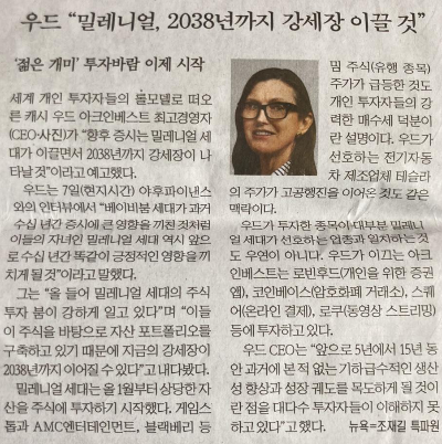 "향후 증시는 밀리니얼 세대가 이끌면서 2038년까지 강세장이 나타날 것"이라고 예고했다.