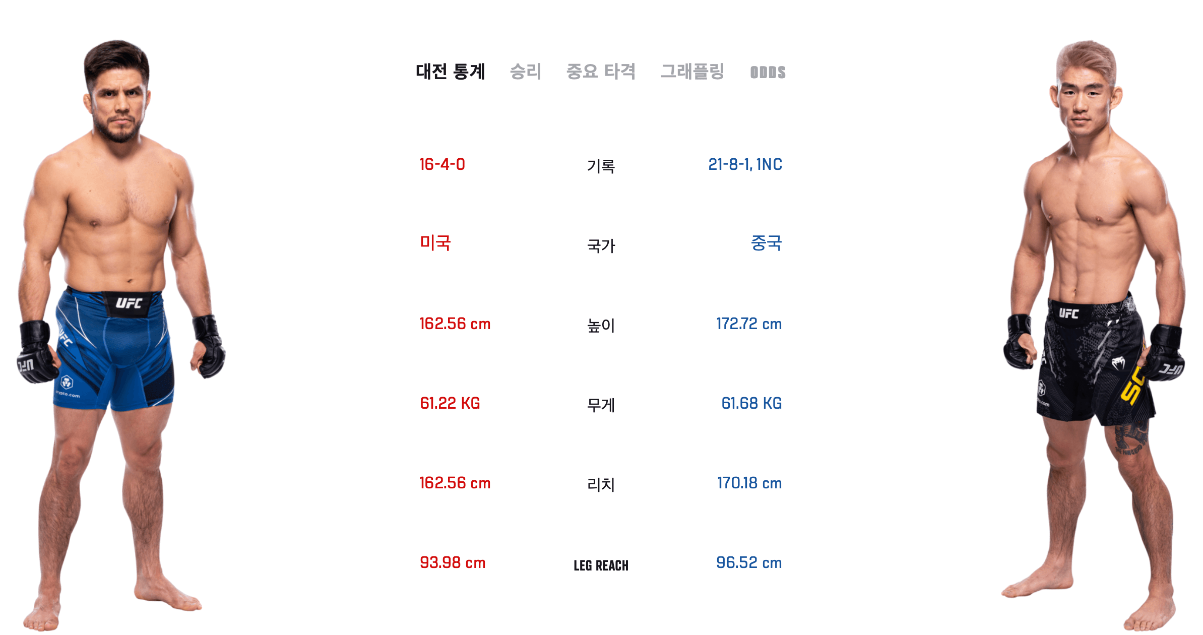 UFC Fight Night 헨리 세후도 vs 송야동 예측