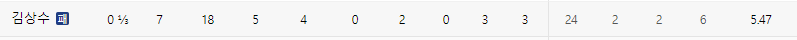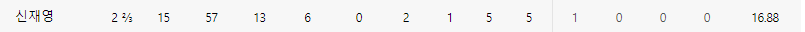 2 2/3이닝 6개의 피안타. 4 사구 2개로 5실점.