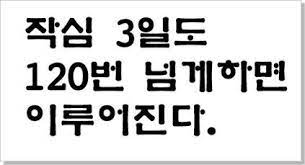 미쳤다 생각하고 어떻게든 마음먹고 3일씩만 행동하기를 120번만 하면 1년을 채우게 되고, 무언가를 하는 행위를 이미 120번을 넘게 했다는 말은 다시 말하면 그것은 이미 이루어야할 목표가 아니라 이룬 목표라 할 수 있다.
