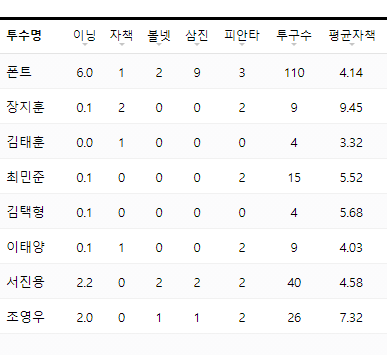 최근 기아전 2번의 등판 + LG전 1번의 등판까지 총 2이닝 동안 1홈런 3안타 볼넷 5개로 5실점.