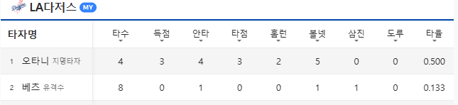 아쉬운 점은 2번타자 베츠가 8타수 1안타라는 빈공을 보여주어 득점으로 이어지지 못했다는 점인데요. 천하의 베츠가.......