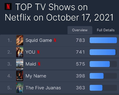 그리고 당연하게도 현재(10월 18일 기준) 마이 네임은 넷플릭스 전체 4위에 랭크될 정도.