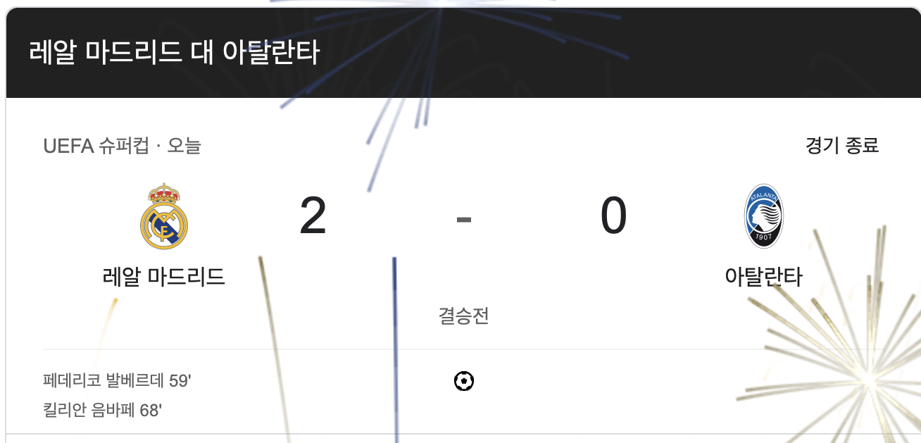어제 레알마드리드와 아탈란타의 UEFA 슈퍼컵이 열렸다.