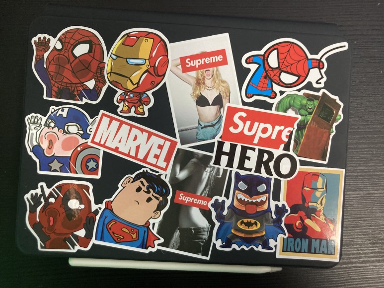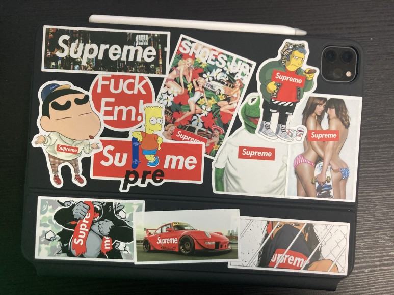 "밋밋하던 매직키보드 뒷면과 앞면에 슈프림의 흔적을 남기니깐 나름 힙해졌다."